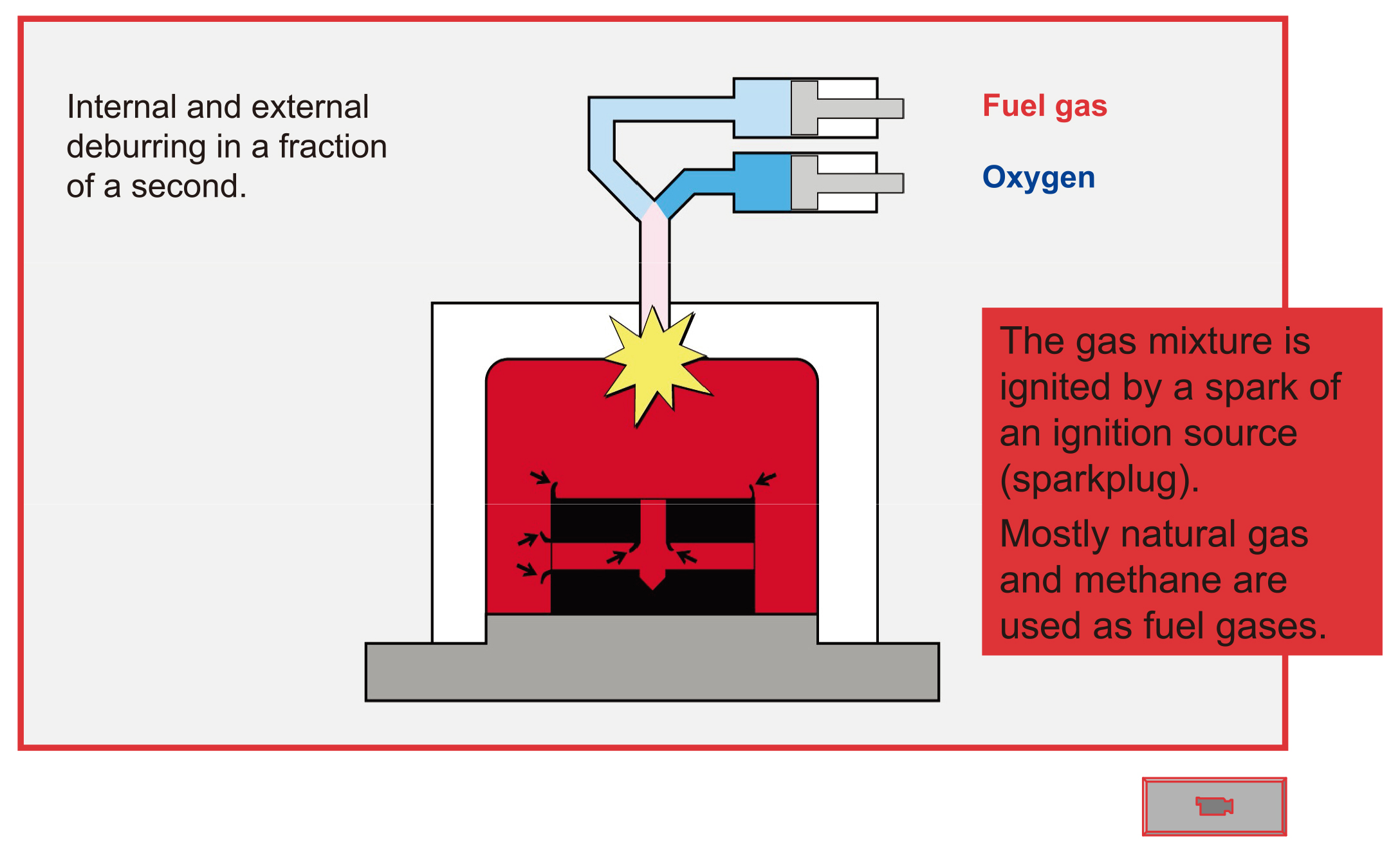 迪伯潤研磨科技提供一系列的表面處理方案和加工工藝 設(shè)備特點(diǎn): ◆ C型架結(jié)構(gòu) ◆ 具有耐久性和可靠性,液壓油缸提供可靠的燃燒室封閉 ◆ 穩(wěn)定的液壓系統(tǒng)保證可靠的閉合腔體,經(jīng)久耐用 ◆ 模塊化機(jī)床外殼 ◆ 低噪音液壓動(dòng)力系統(tǒng)減少對生產(chǎn)環(huán)境的噪音,保證機(jī)床操作人員的安全性 ◆ 去毛刺腔體水冷卻 ◆ 確保機(jī)床連續(xù)工作 ◆ 液壓充氣系統(tǒng) ◆ 高精度氣體測量系統(tǒng),確保產(chǎn)品質(zhì)量的一致性 ◆ 手動(dòng)加載,6個(gè)工作臺(tái)/燃燒腔直徑為250毫米,配備雙工位工作臺(tái) ◆ 加工周期30-60秒 ![]() |